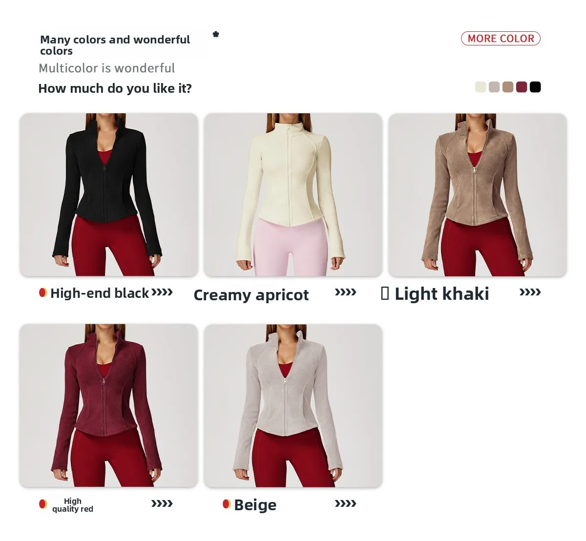 couleur : noir premium, abricot crémeux, kaki clair, magenta élevé, beige
