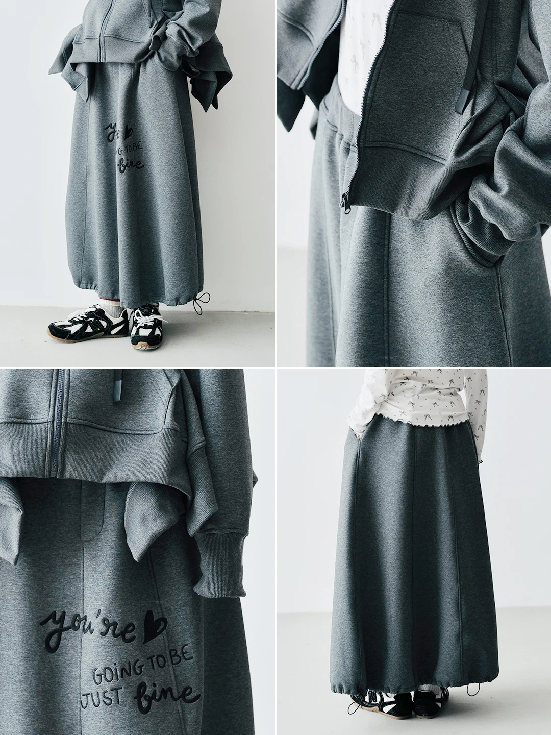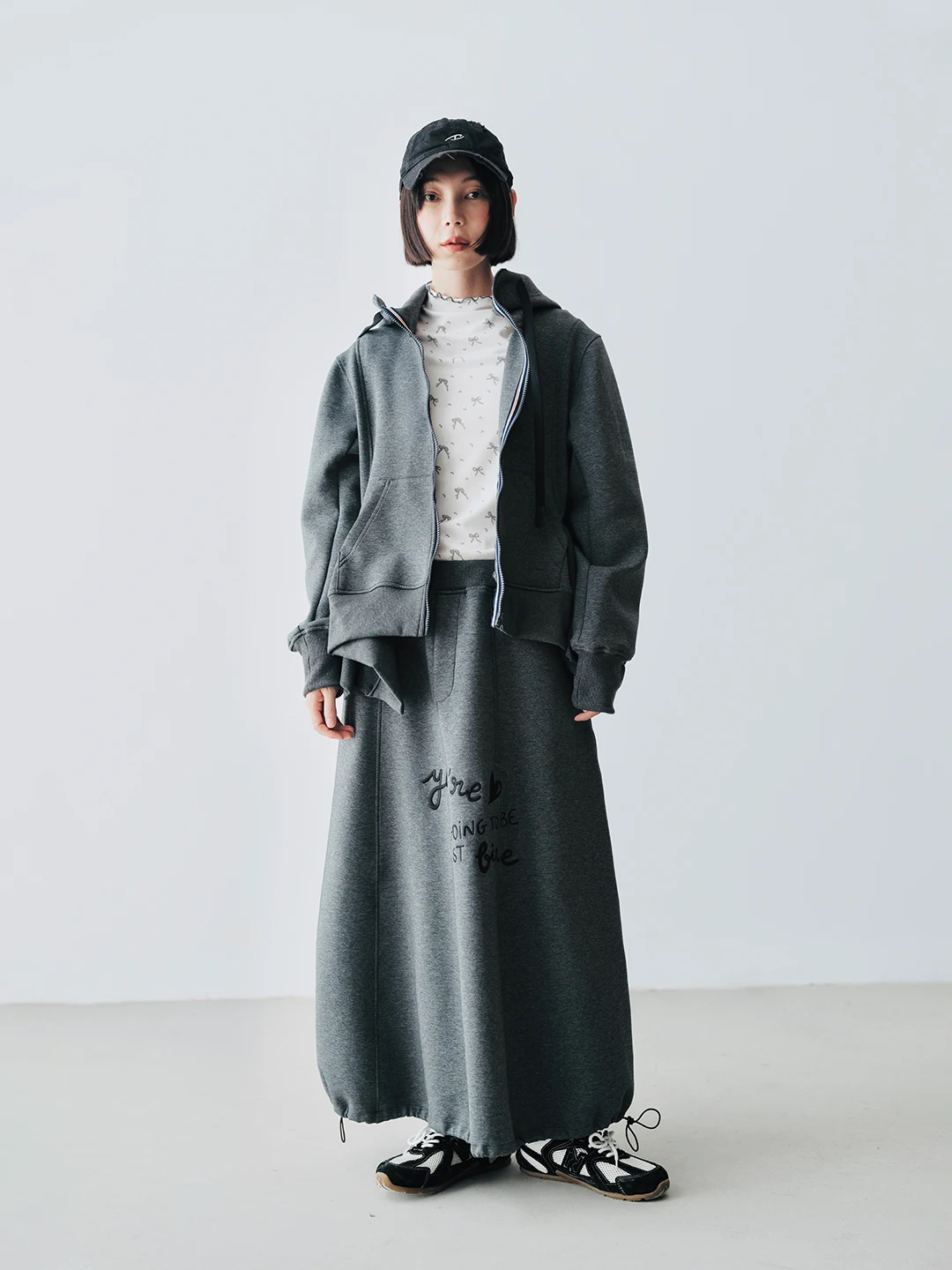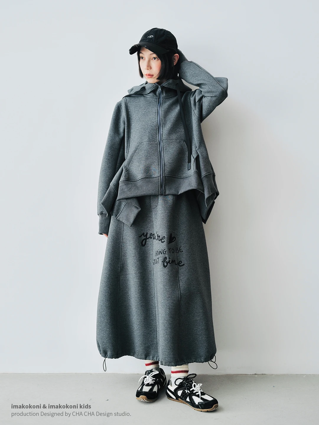 IMAKOKONI original design elastic waist letter embroidered gray skirt for women 244787