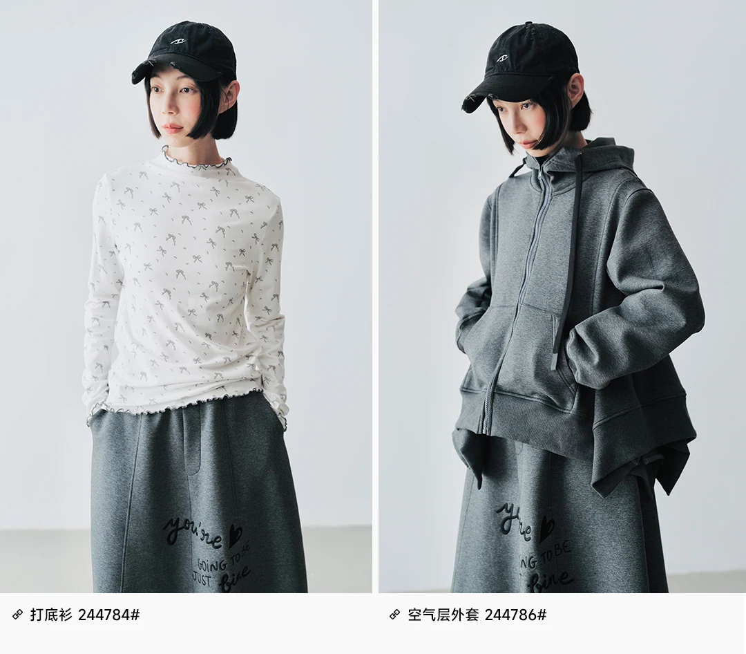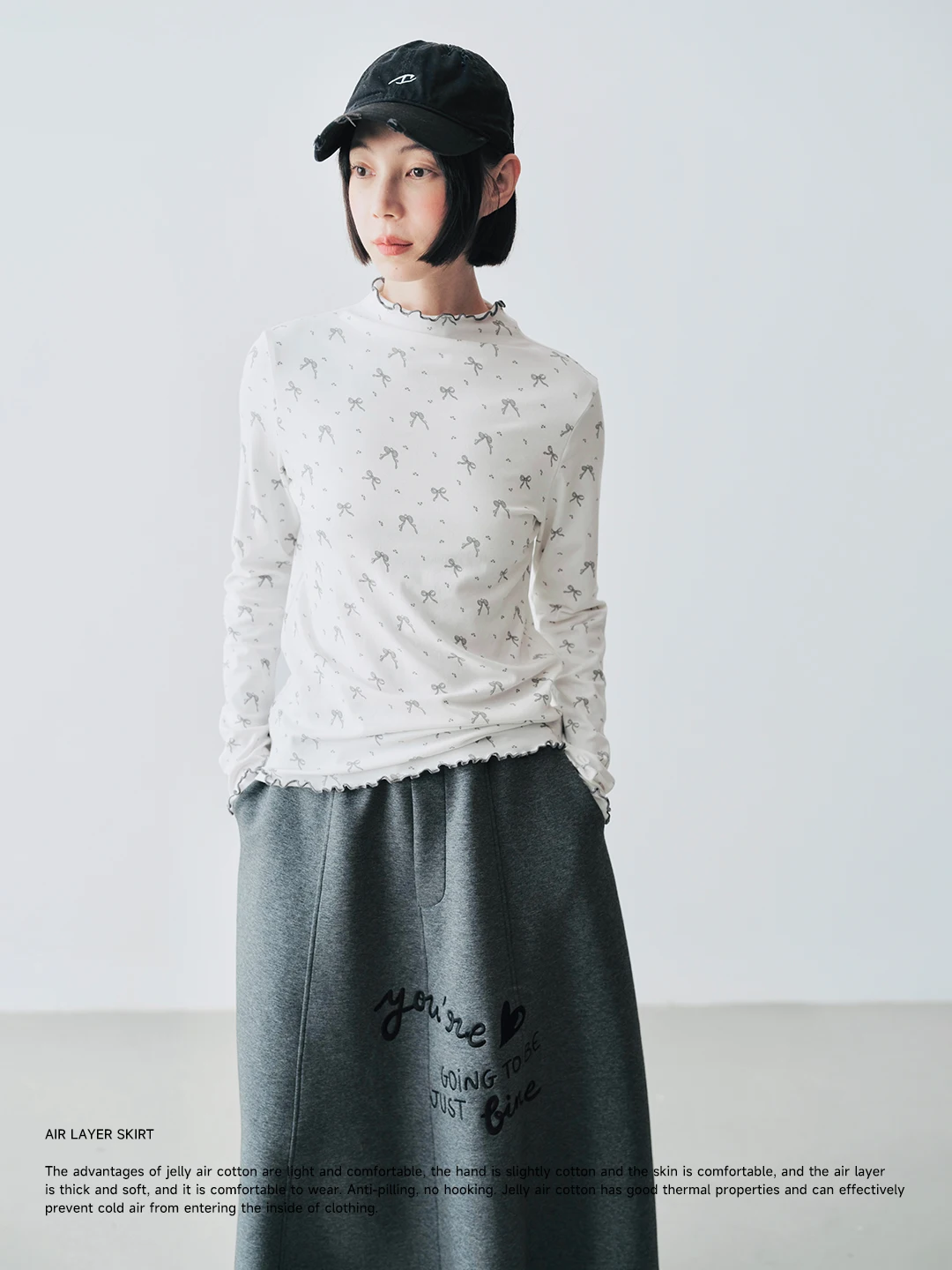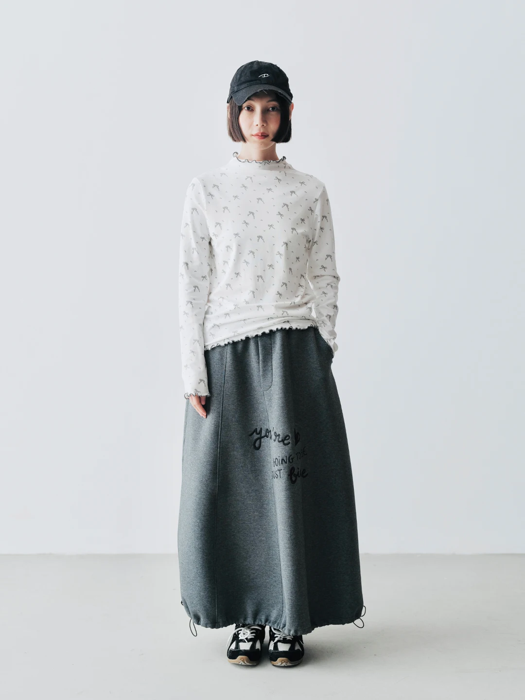 IMAKOKONI original design elastic waist letter embroidered gray skirt for women 244787