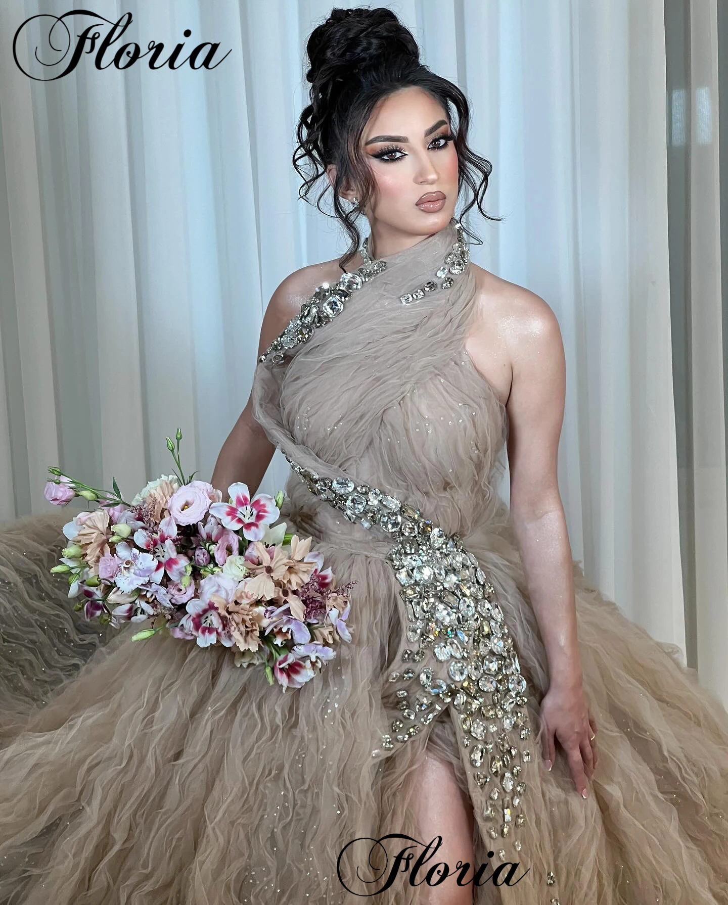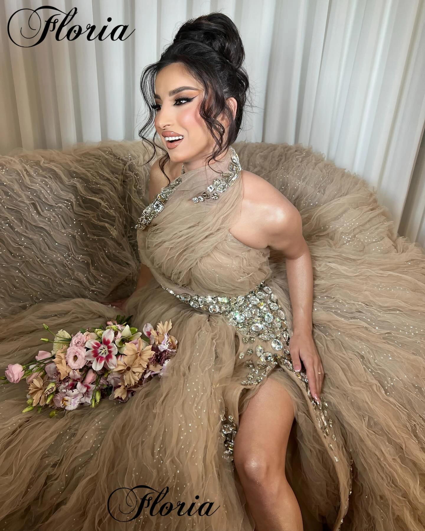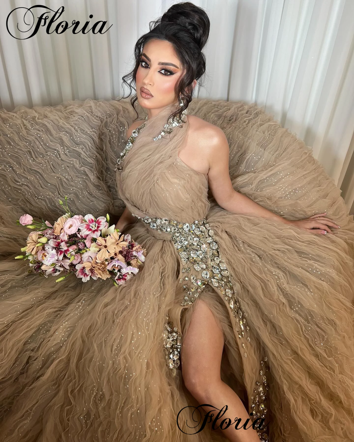 Light Brown Luxury Celebrity Dresses With Side Slit Elegant Red Carpet Runway Dresses Evening Gowns Vestidos De Noche Customized