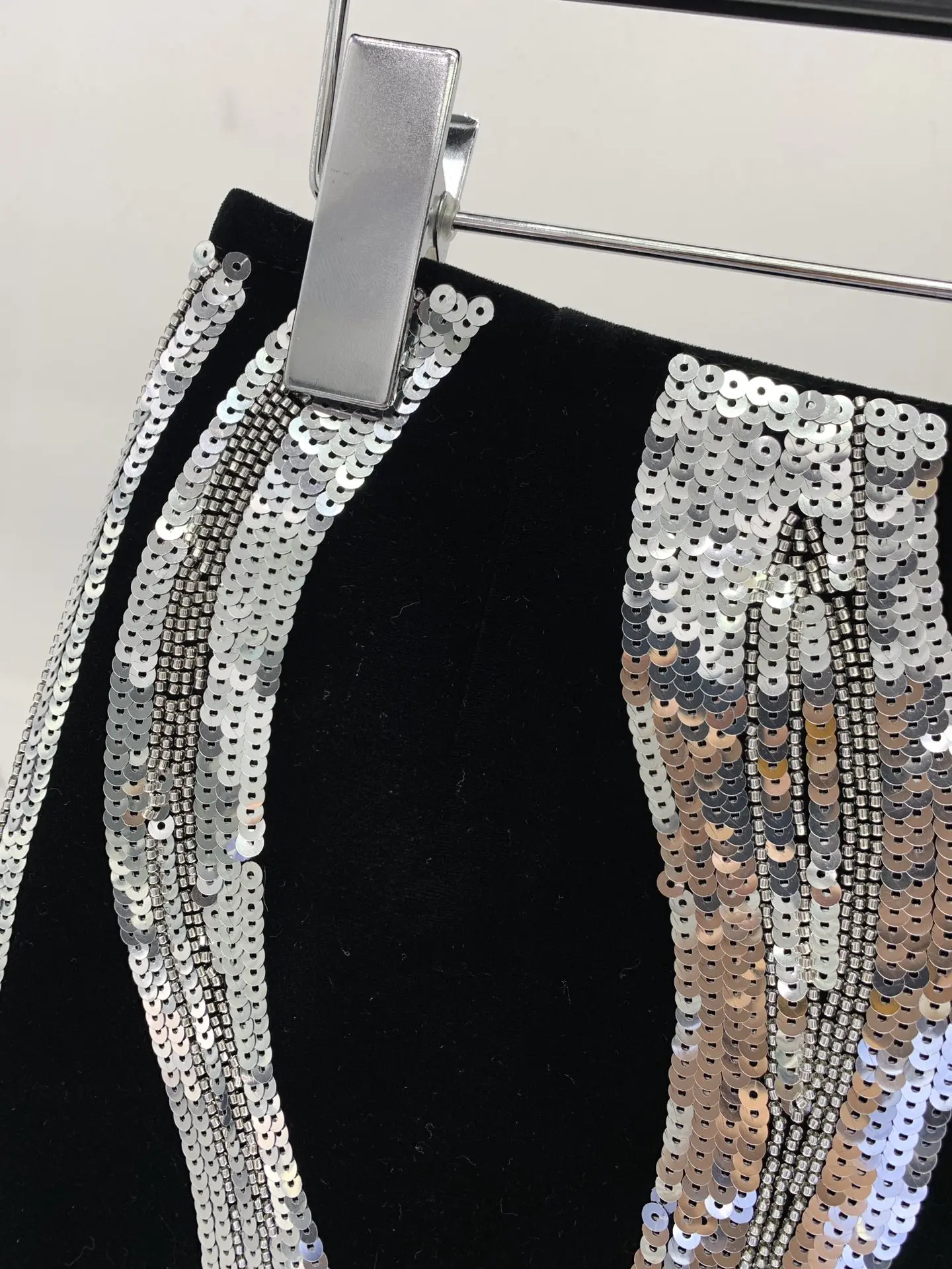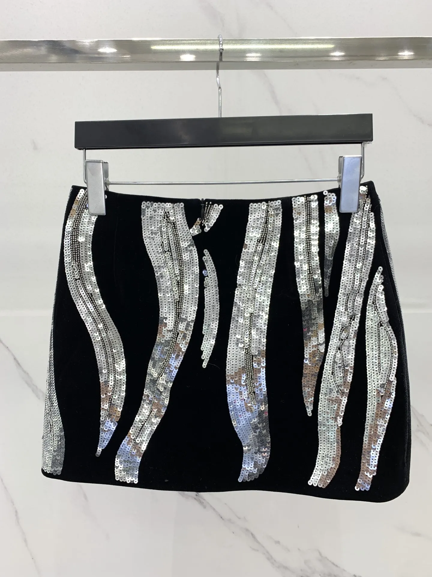 Luxurious silver bead sequin embroidered wavy line skirt autumn fashion new black velvet short skirt women's party dress