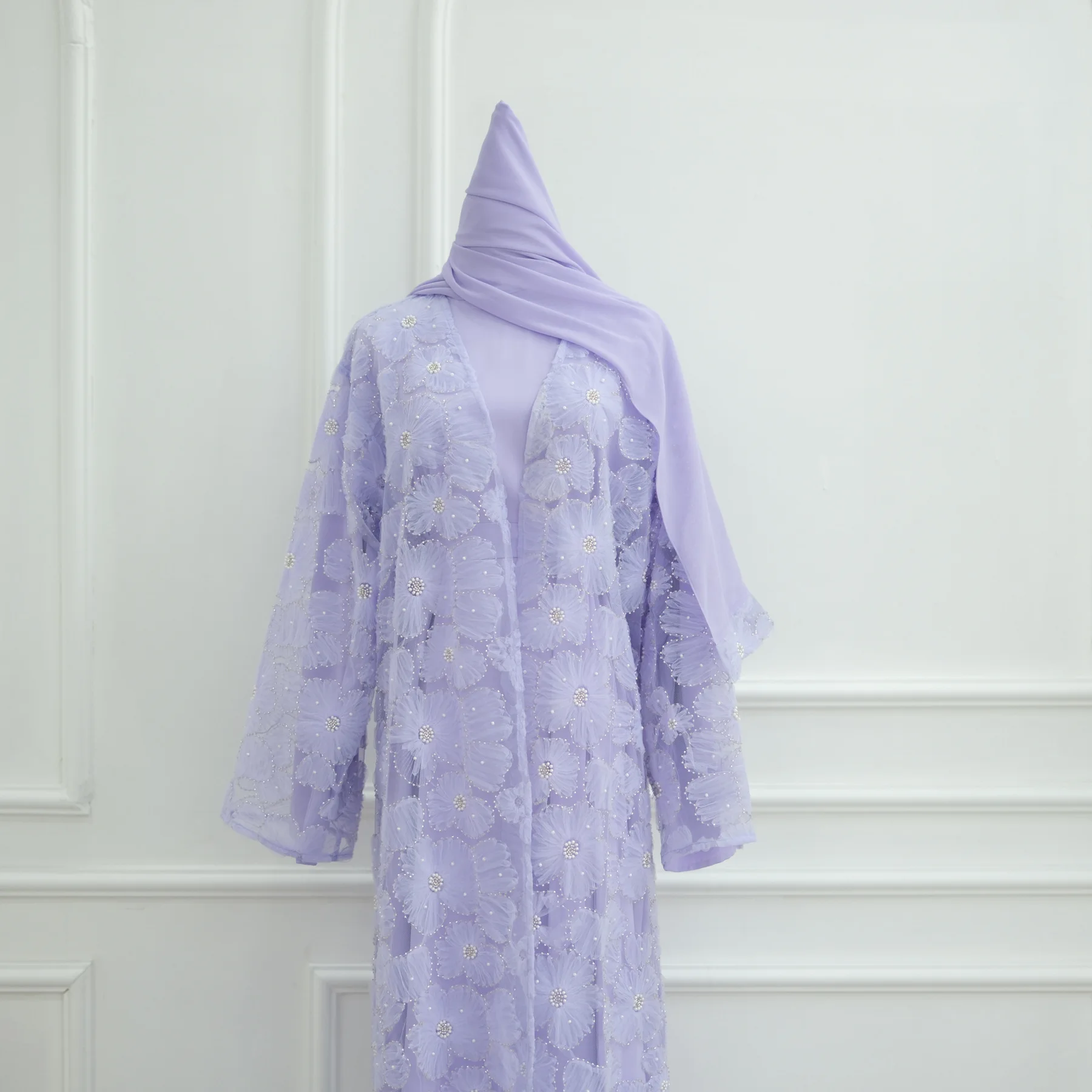 Luxury Dubai Lace Beads Cardigan Muslim Sets Women Hijab Abaya Kimono Jalabiya Ramadan Turkey Kaftan Robe Islam Clothing Caftan