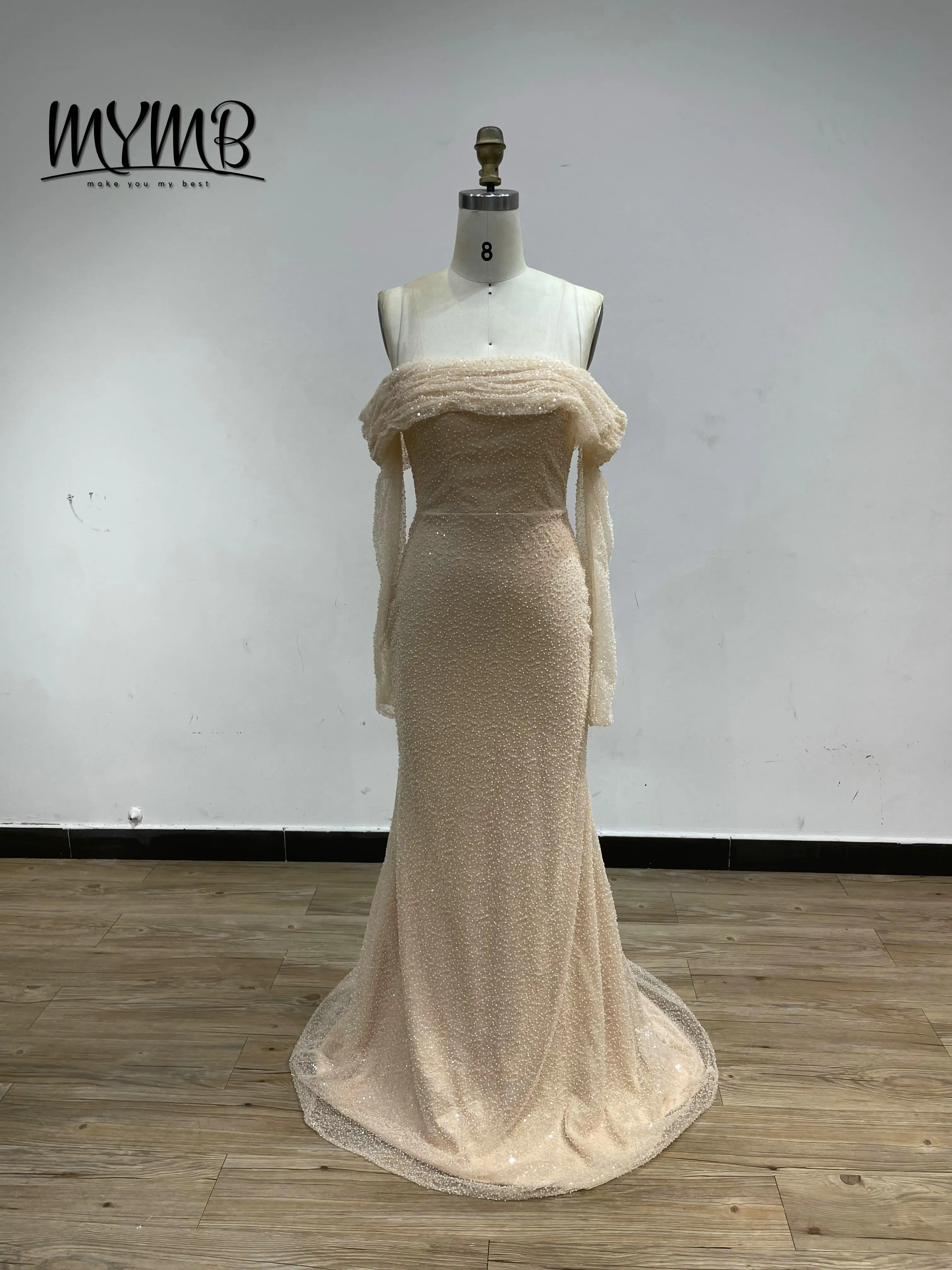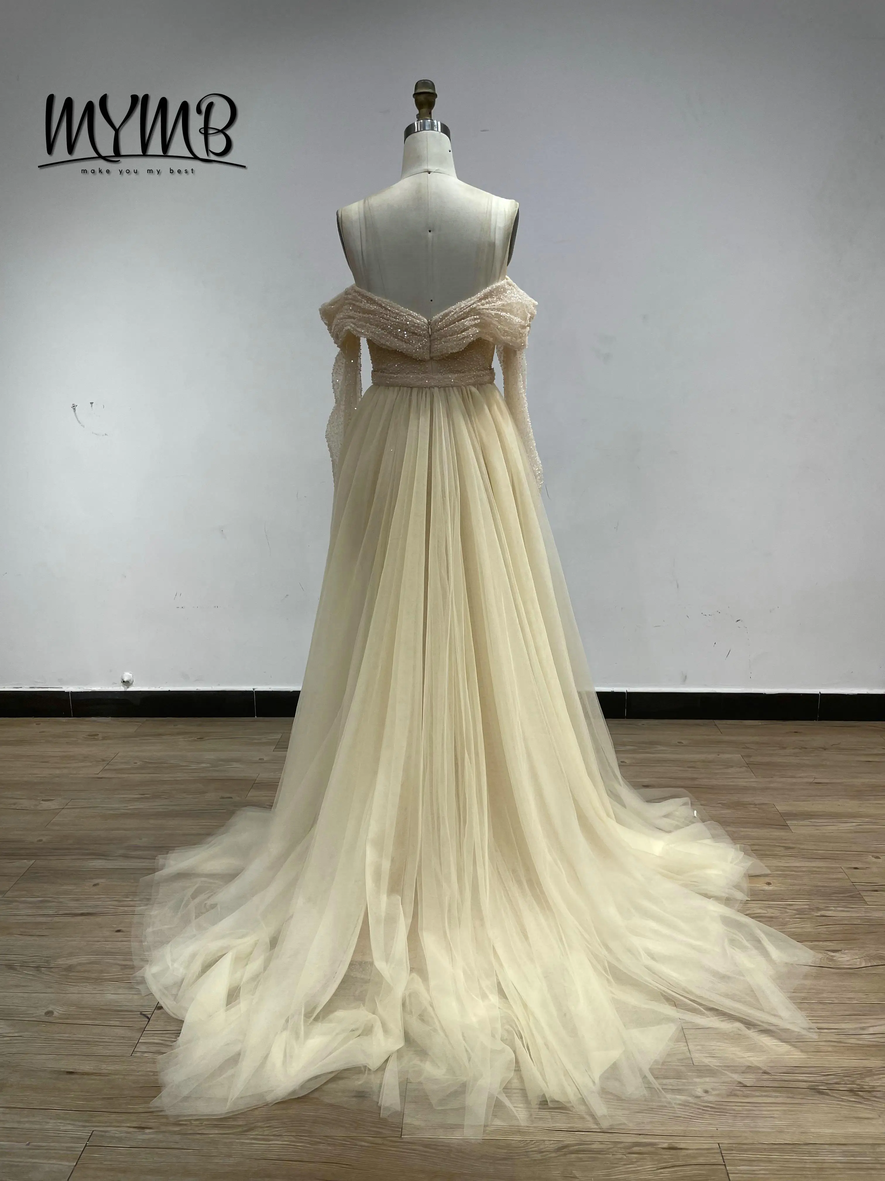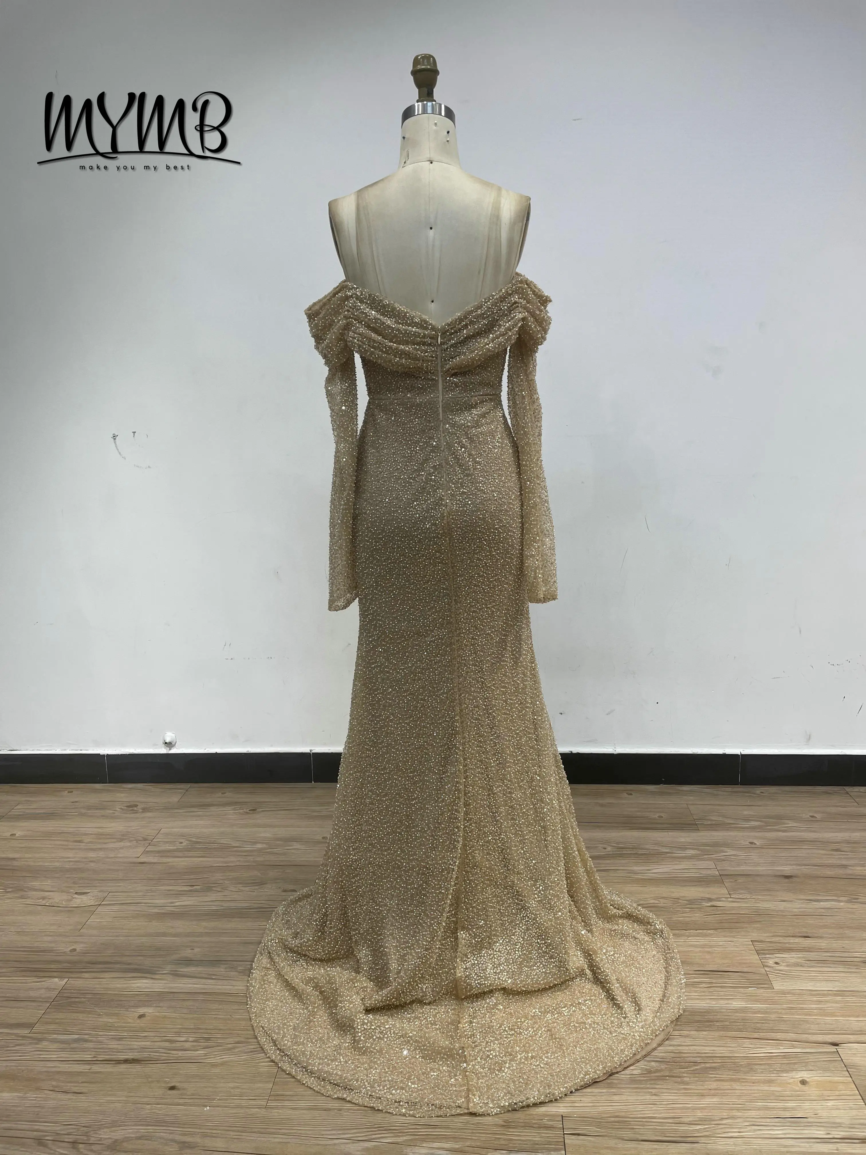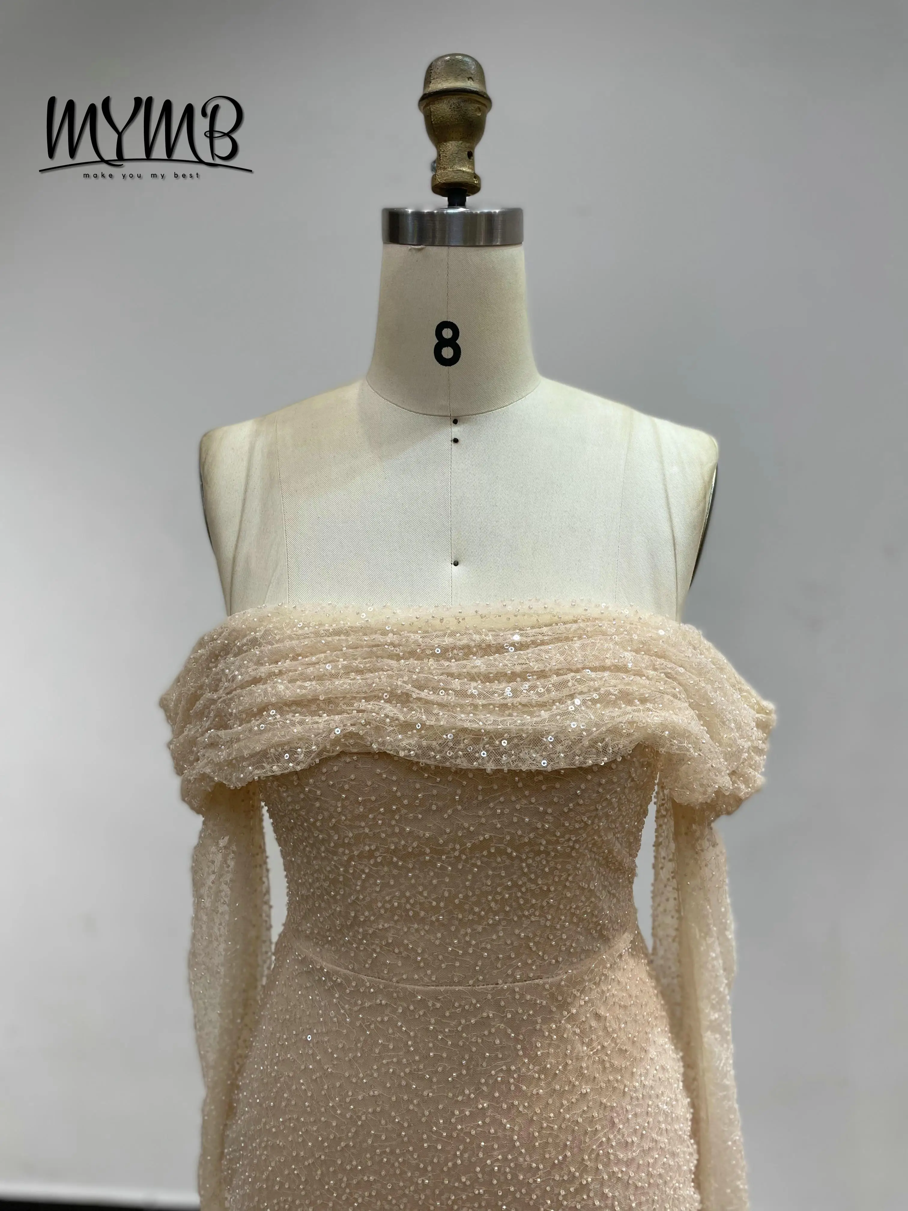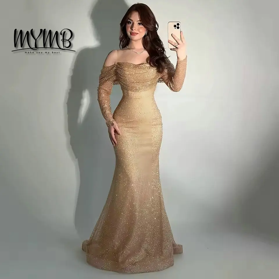 MYMB Fairy Flowing Long Sleeves Homecoming Dresses Off the Shoulder Backless Sequin Gowns With Detachable Skirt for Girls DDS051