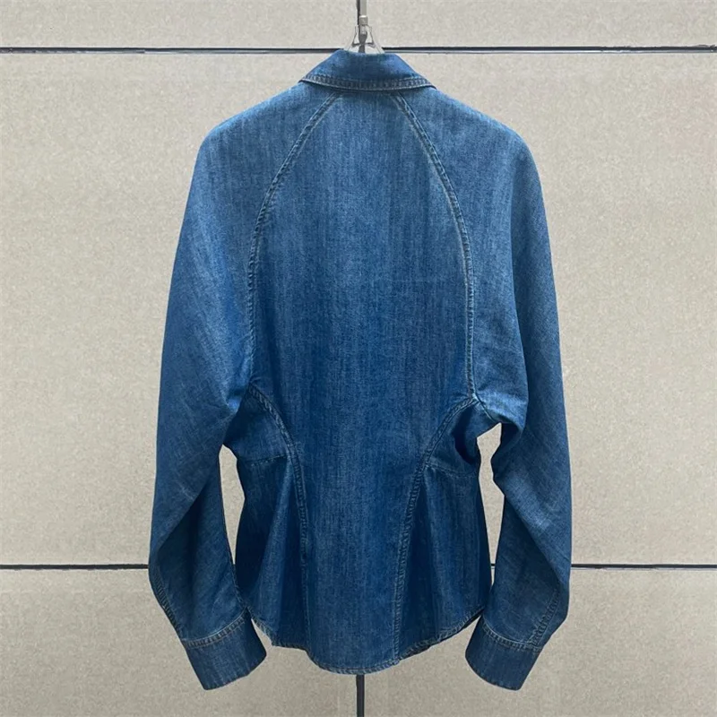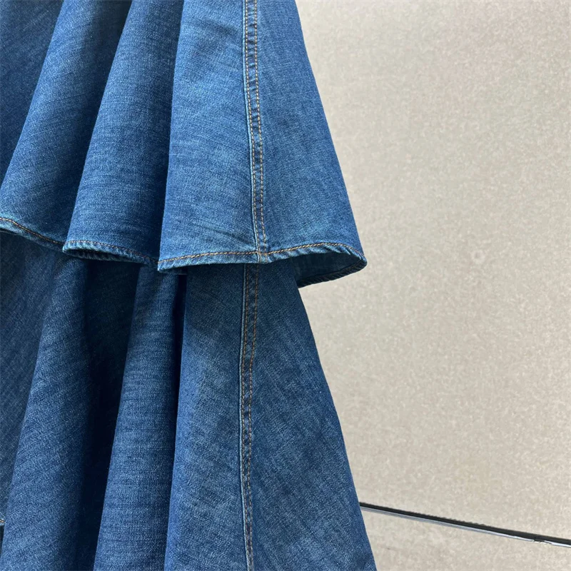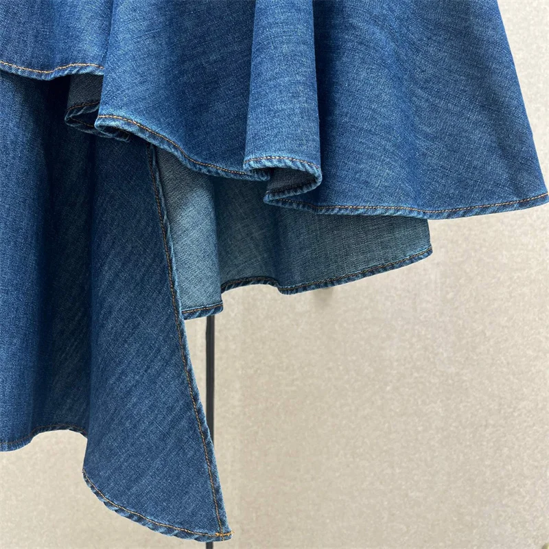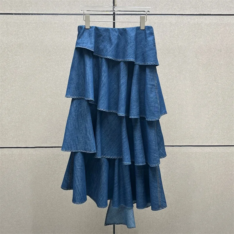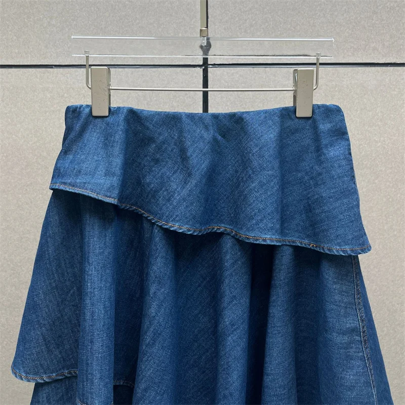 Women's skirt New asymmetrical spiral long skirt for autumn 2025 High waisted slim women's half skirt Cotton blend denim skirt