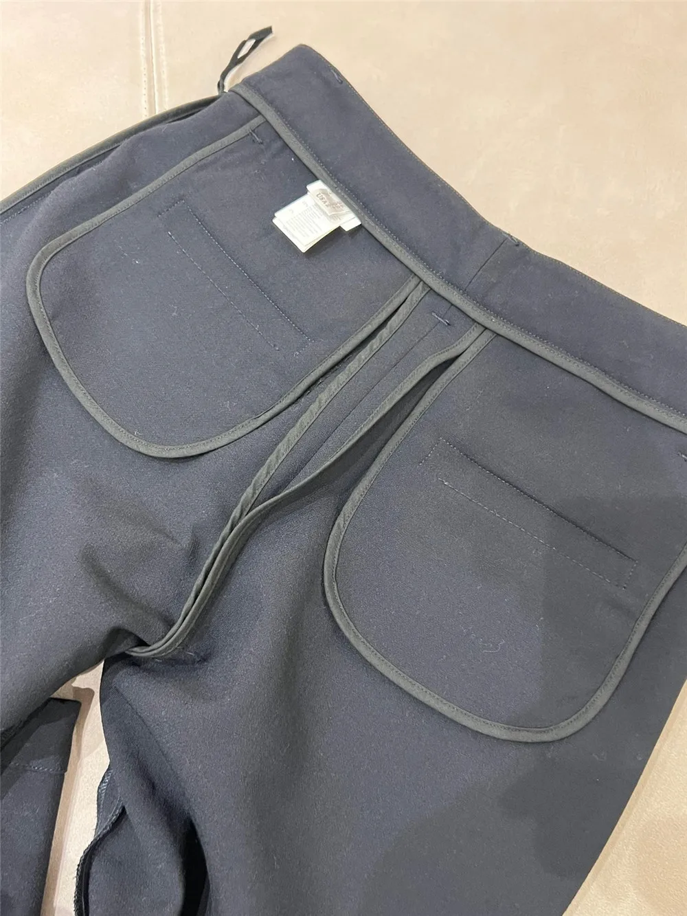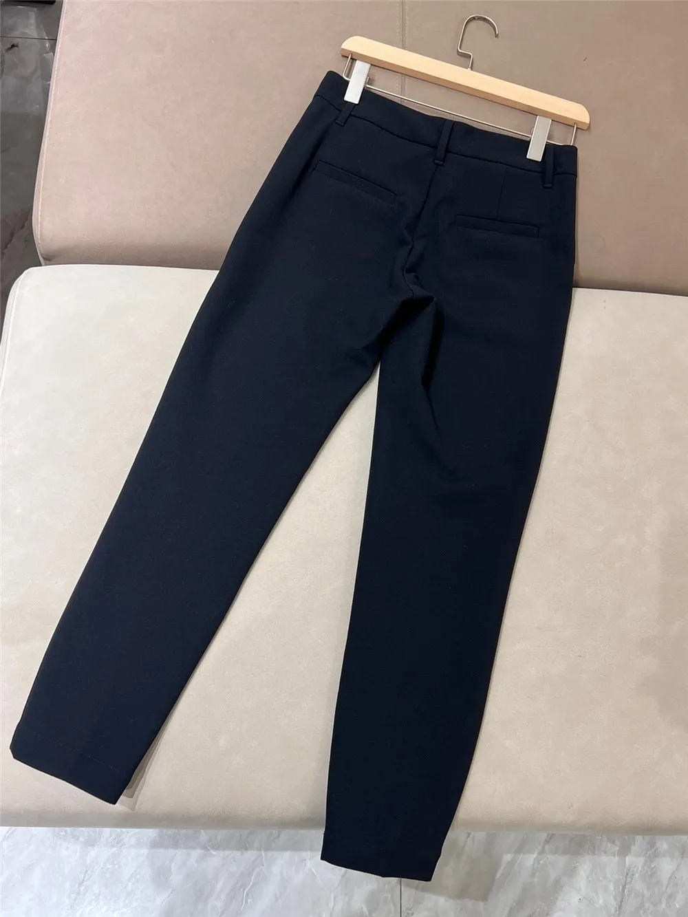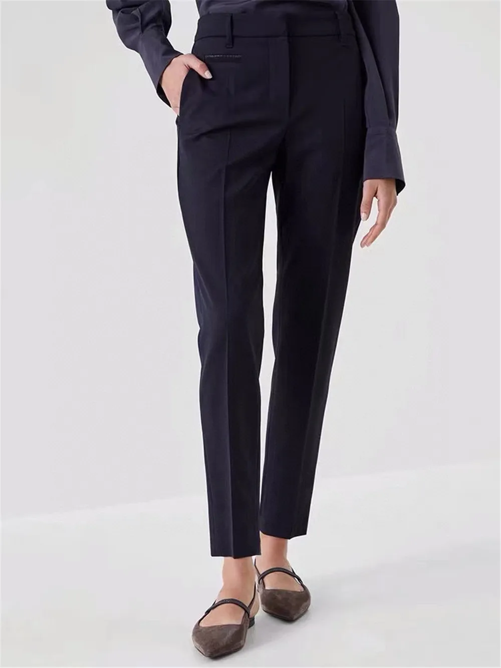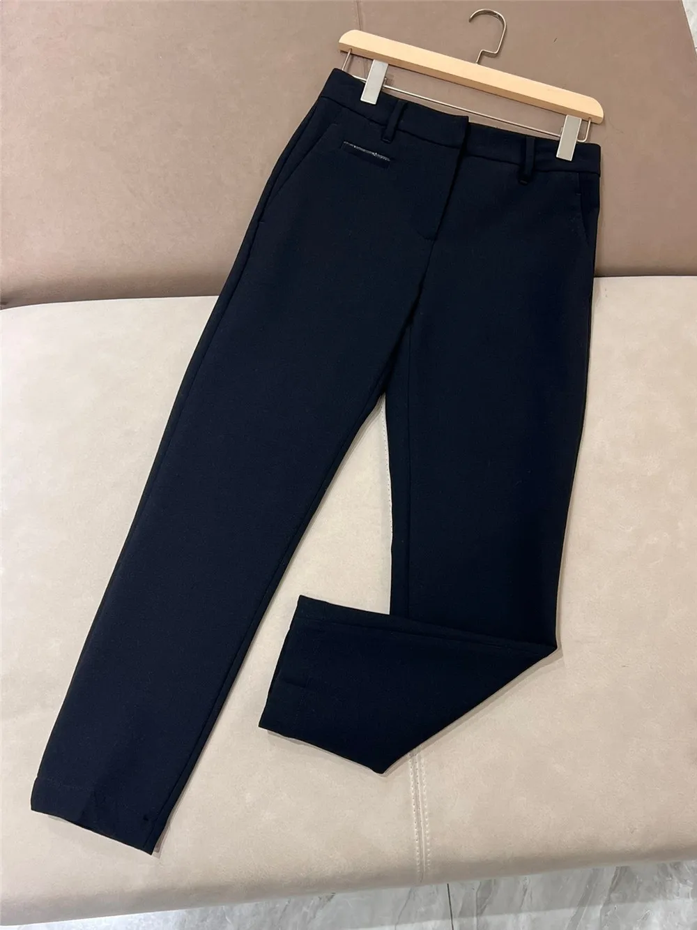 Worsted Wool Four Side Stretch Straight pants Black Casual Suit Trousers Women New B C